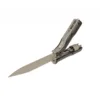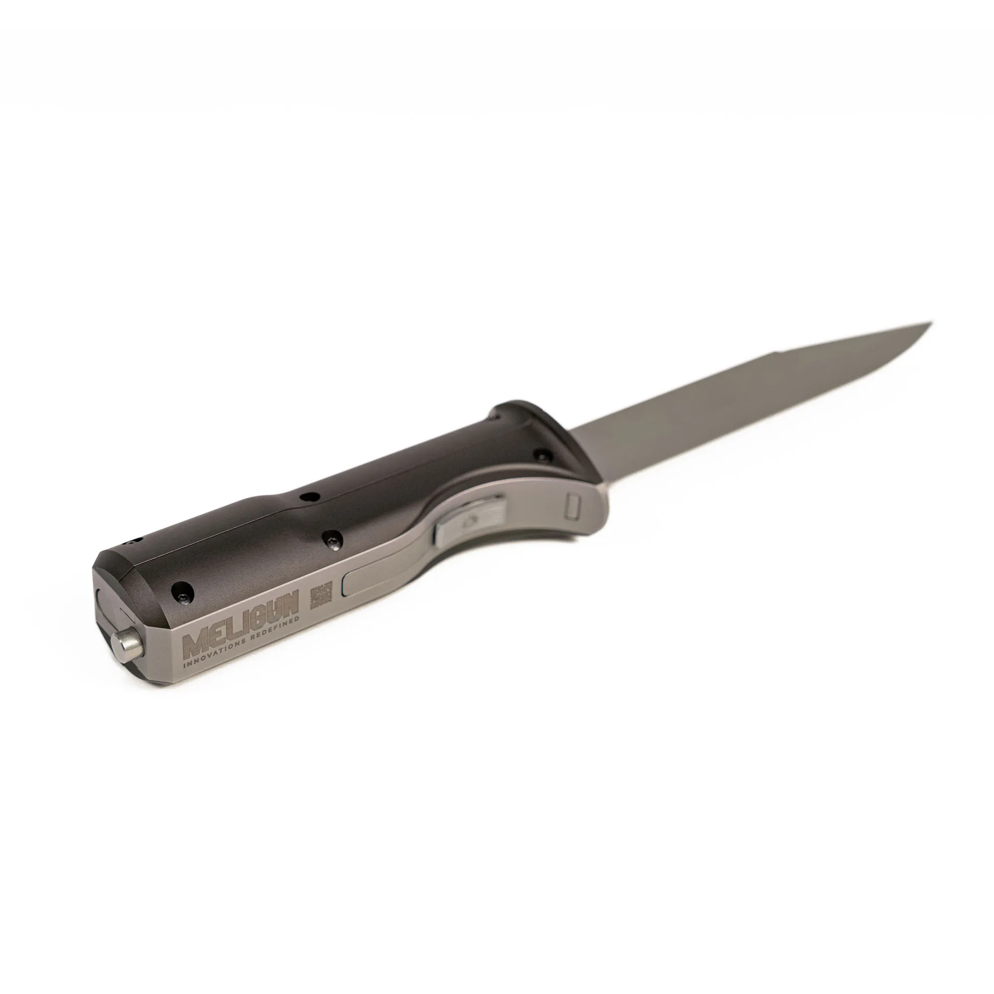 Constructed from high-grade stainless steel, the MG‑22 features a fully functional blade and a discreet, integrated firing system. It can fire six .22 LR rounds through a concealed mechanism, making it both a practical tool and a conversation piece.